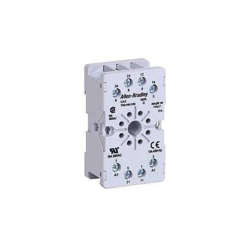 Zócalo de relé, 11 cuchillas, acepta módulos enchufables, terminales protegidos, bobina y separación de contactos, se utiliza con relés 700-HB y 700-HJ.